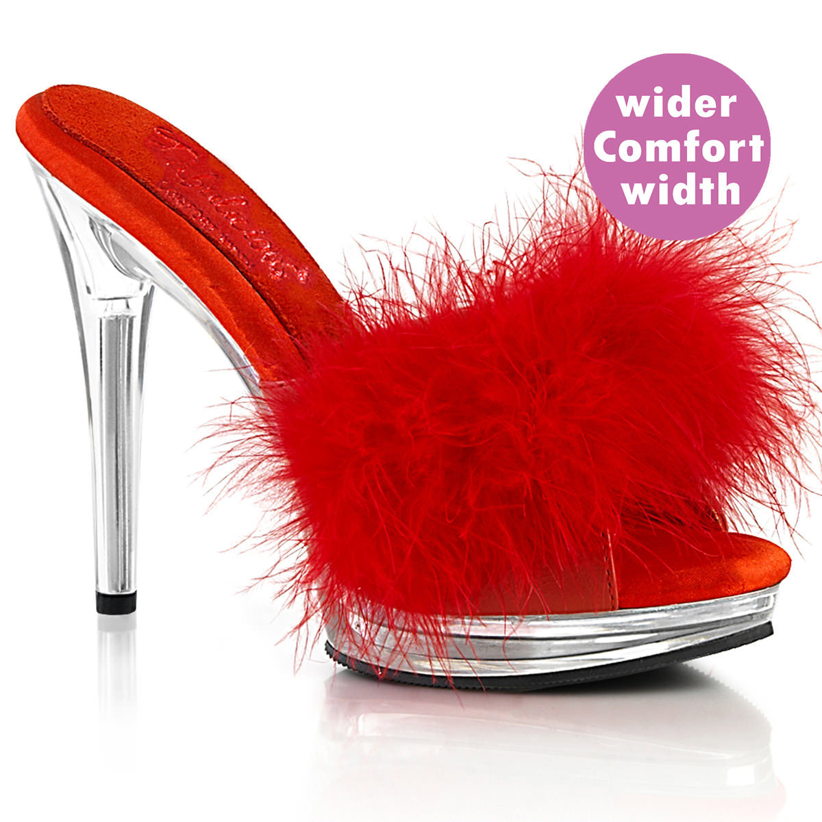 Experience opulent comfort with the Glory-501F-8 Red Fur Marabou Slippers from Fabulicious. These slippers are exquisitely adorned with lavish Marabou feather detailing, adding a touch of luxury to special occasions. The comfort-width footbed ensures generous space for your feet, making them perfect for extended wear. With a 5-inch heel and 3/4-inch platform, you can enjoy optimal comfort without sacrificing style. For high-quality, fashionable, and comfortable slippers, the Glory-501F-8 Marabou Slippers are your ultimate choice.