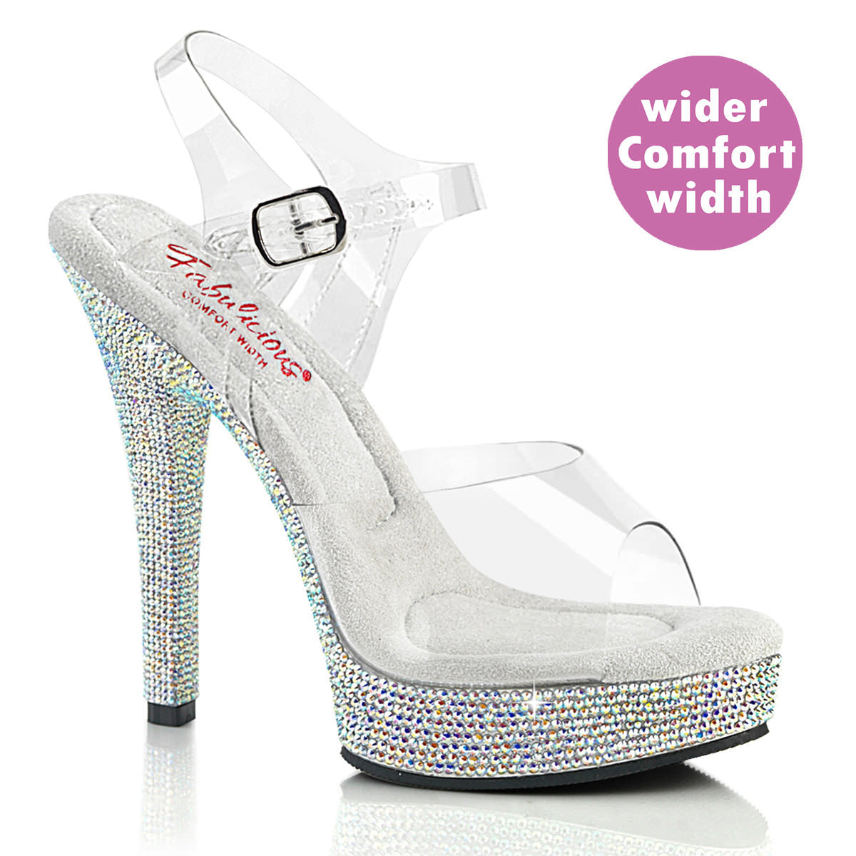 Sparkle and shine in the Majesty-508DM Sandals from Fabulicious. These elegant sandals have a five-inch heel and a seven-eighth-inch platform, both covered with dazzling rhinestones for a sophisticated look. The comfort width footbed is 5% wider than our standard width, providing optimal comfort for long-lasting wear. Whether you're attending a wedding, a prom, or any other special event, these sandals will complement any outfit with a touch of class. Step up your style game with the Majesty-508DM Sandals, designed to keep you comfortable and fashionable all night long.