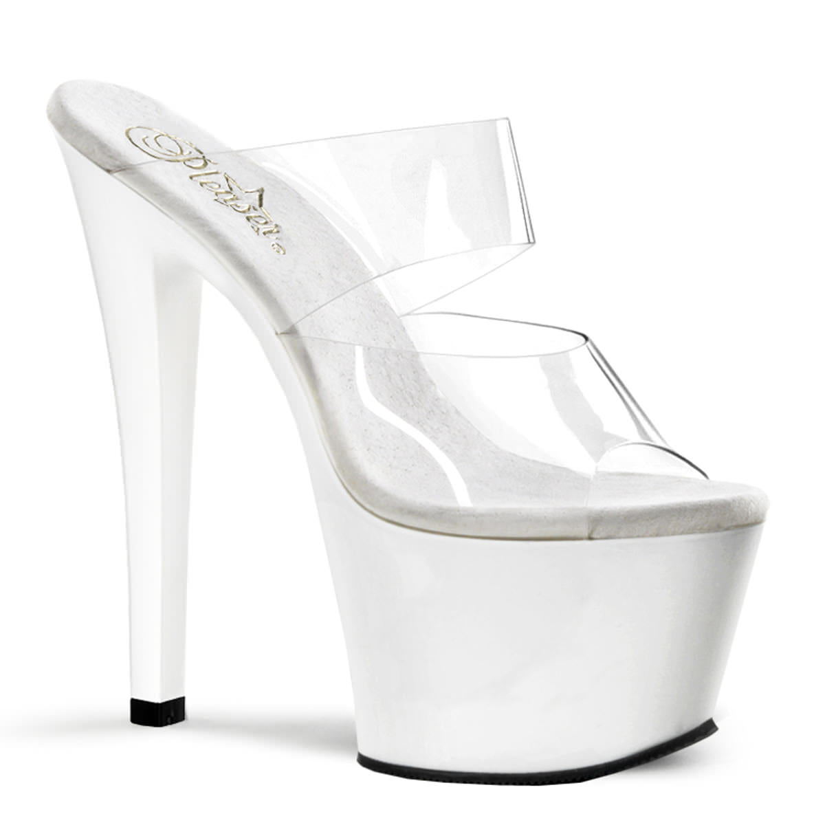 7" (17.8cm) Heel, 2 3/4" (7cm) White Platform Clear Two Band Slide Featuring Vegan Leather Insole