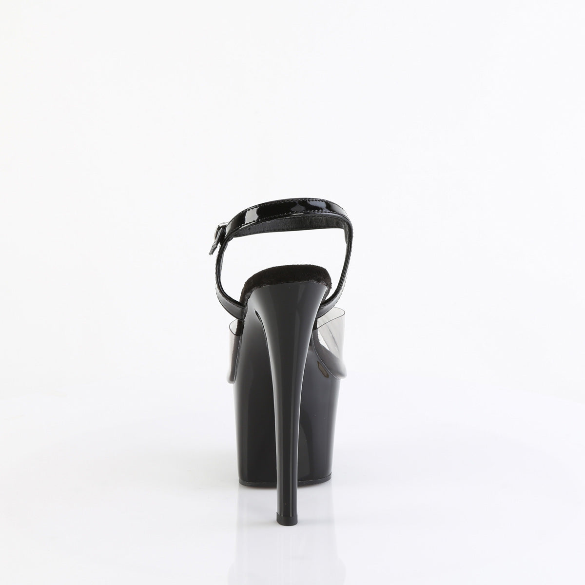 7" (178mm) Heel, 2 3/4" (70mm) Black Platform Clear Smoke Color Ankle Strap Sandal
